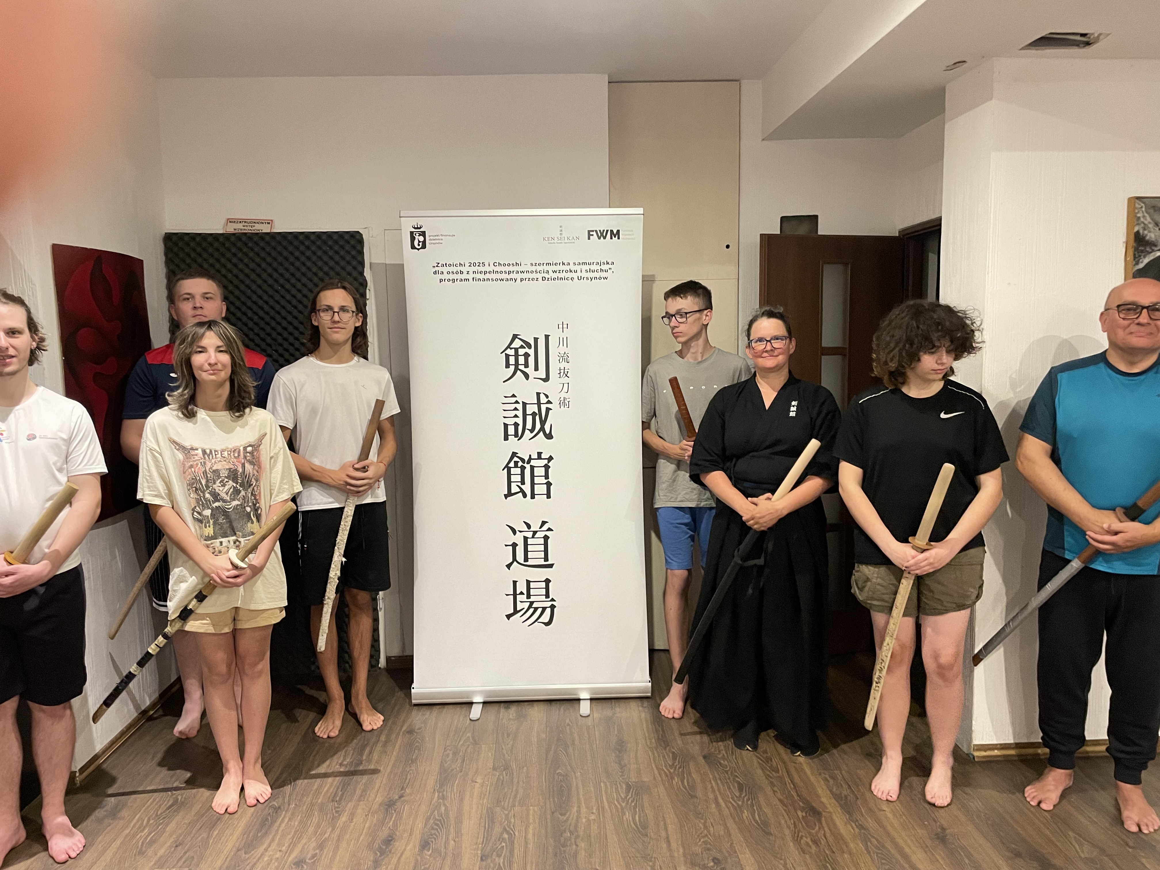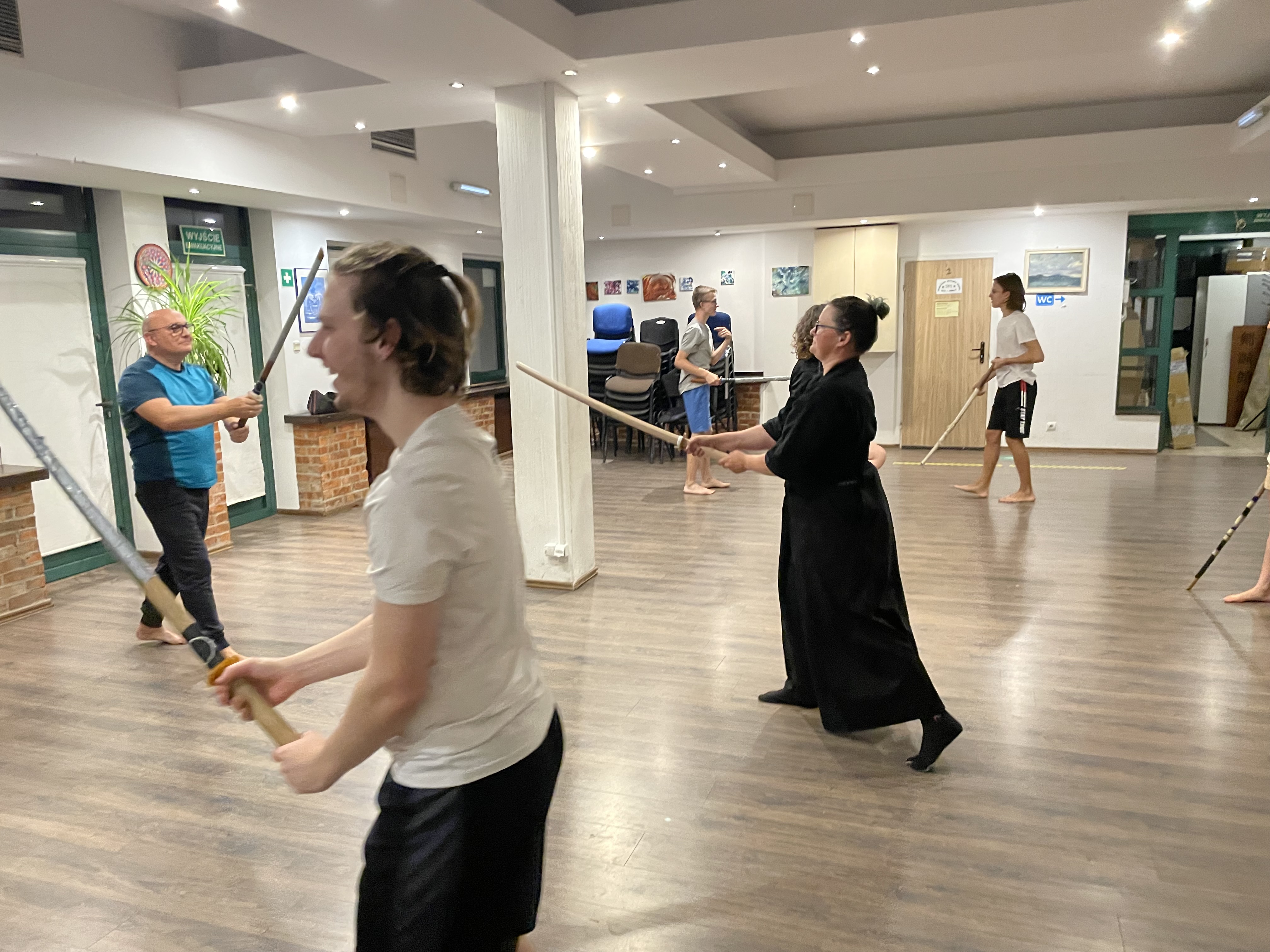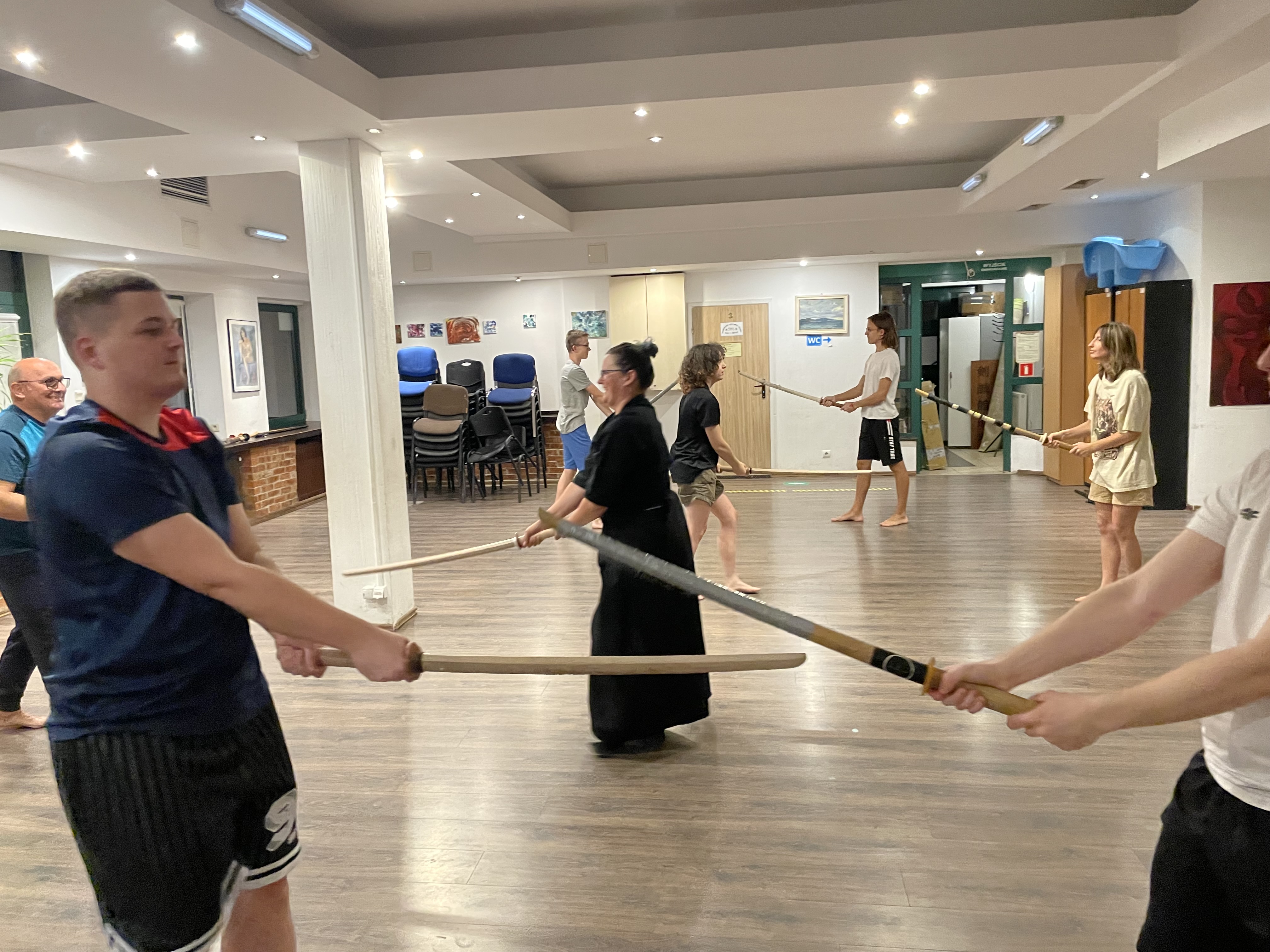 W minionym tygodniu rozpoczęliśmy treningi w Szkole Szabli Japońskiej KEN SEI KAN. Pierwszy trening to poznanie podstawowych zasad udziału w zajęciach - zwłaszcza wzajemne ukłony, które oznaczają szacunek do: miejsca, uczestników i prowadzącego zajęcia. Z dużym zaangażowaniem ćwiczyliśmy postawę, zasady trzymania i posługiwania się mieczem, oraz zadawanie cięć, oczywiście z zachowaniem bezpieczeństwa. Z ciekawością oczekujemy na kolejny trening.