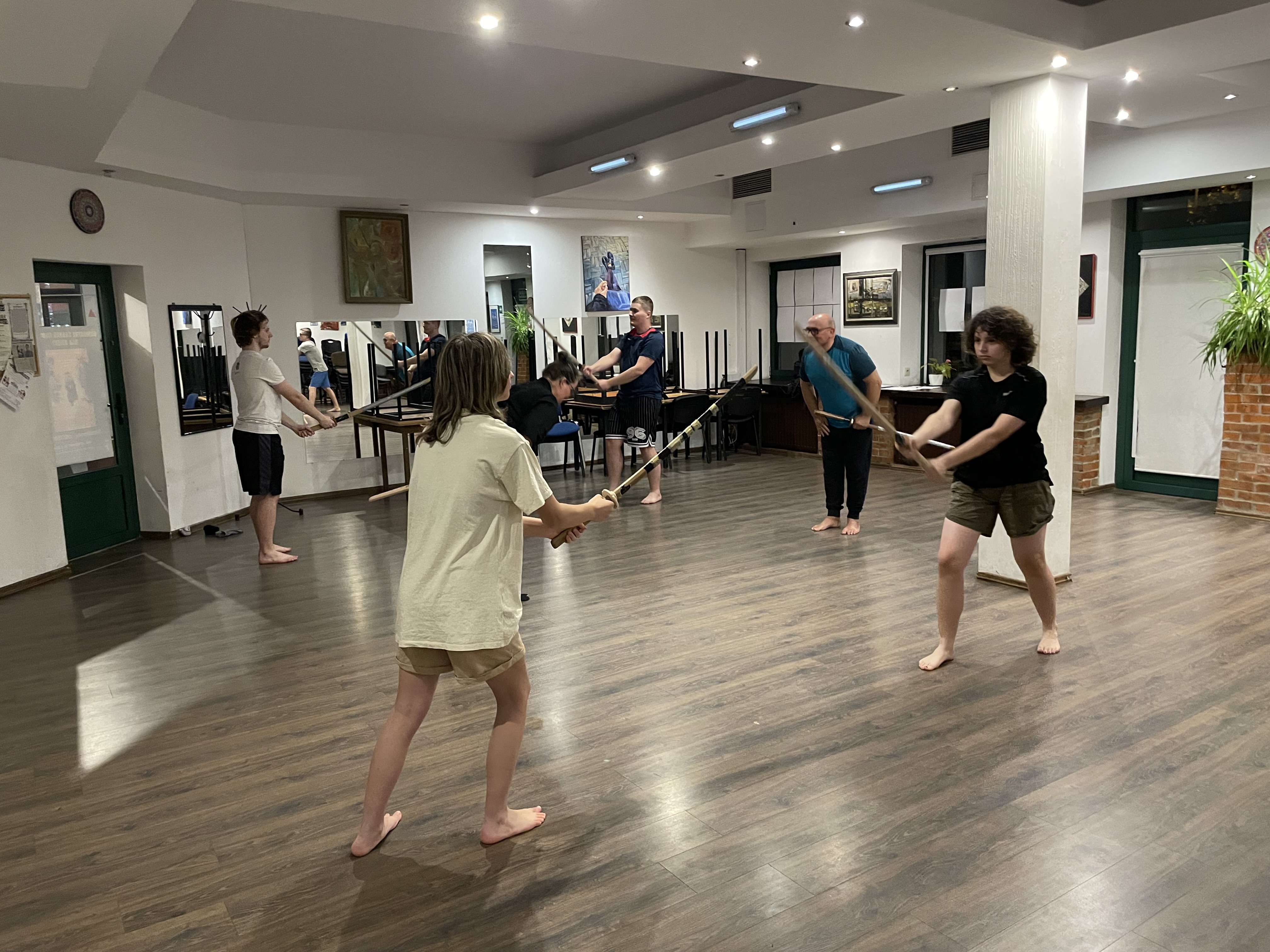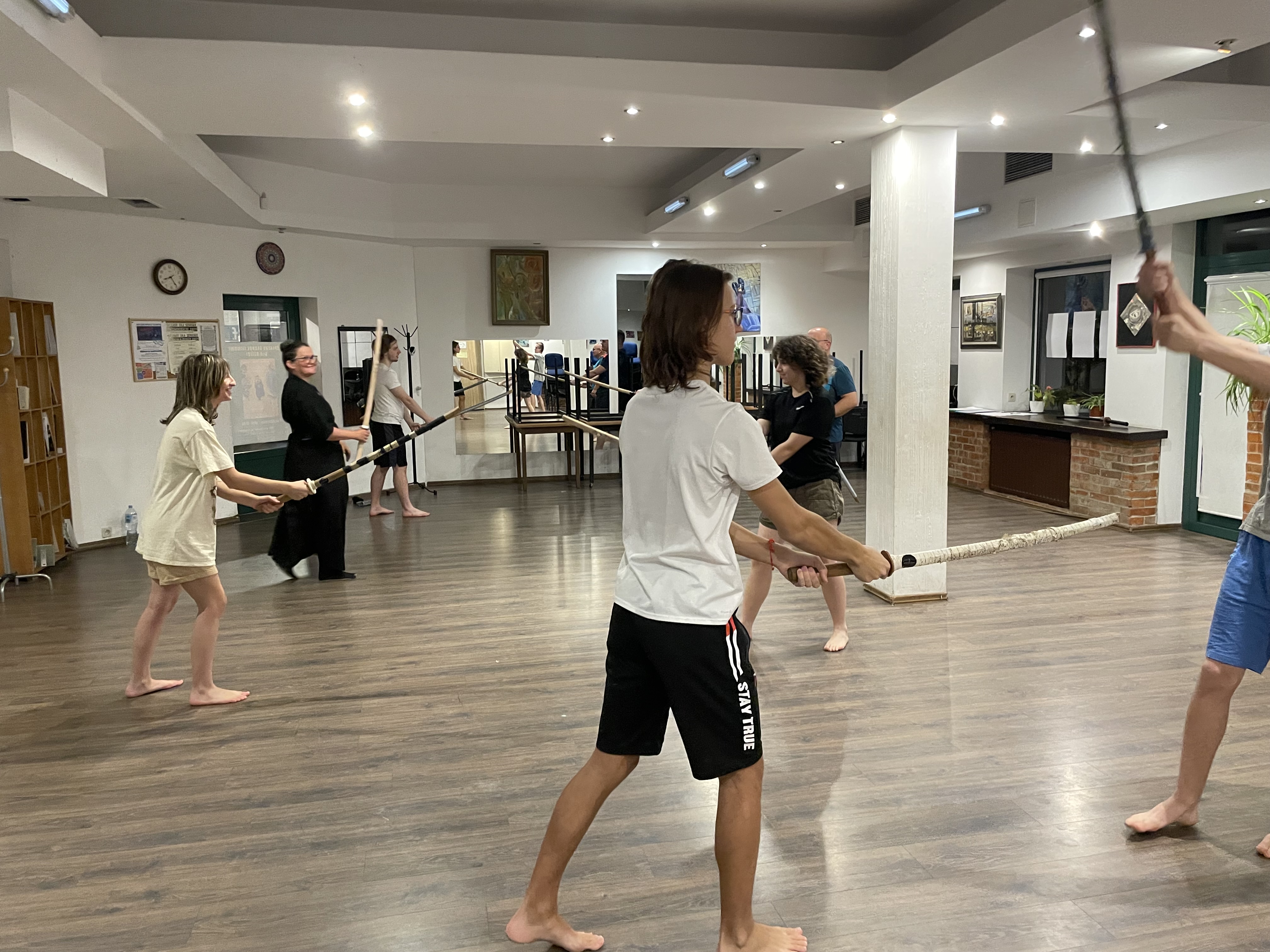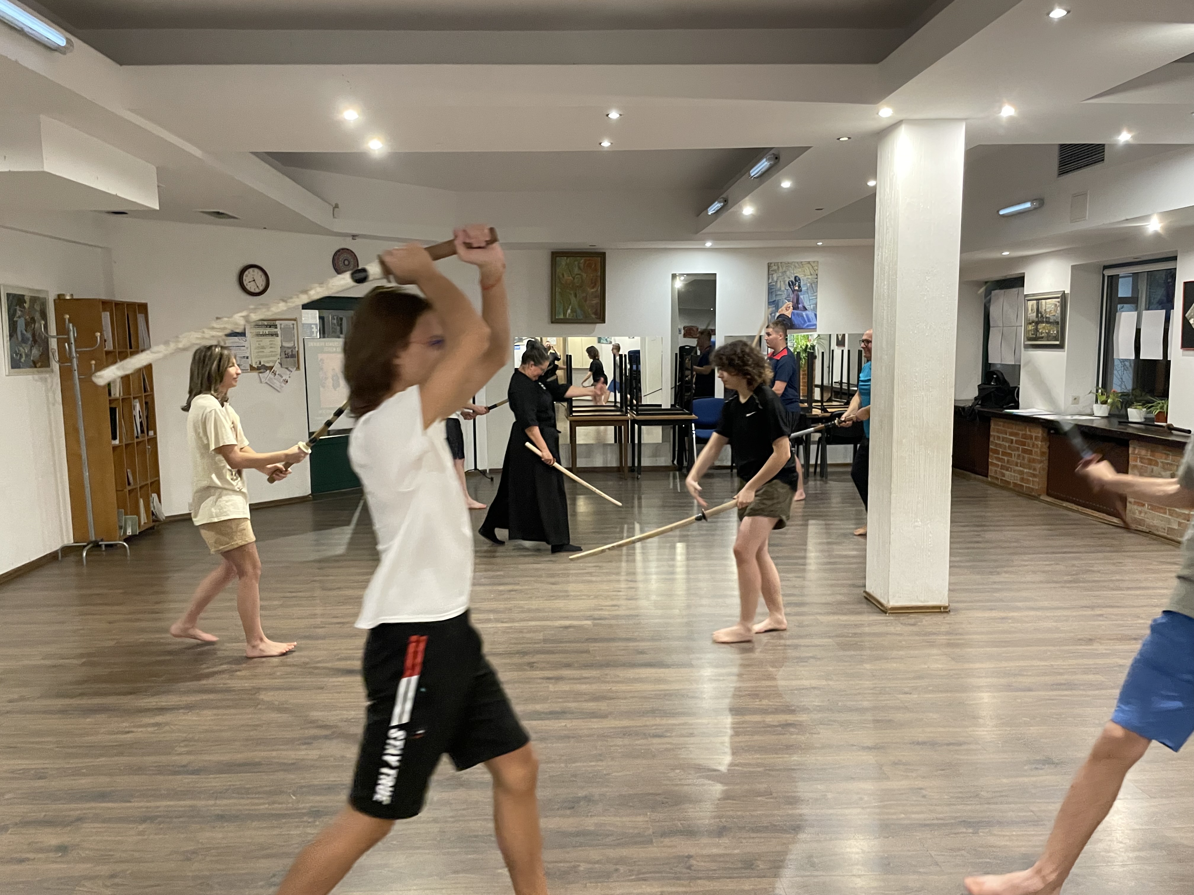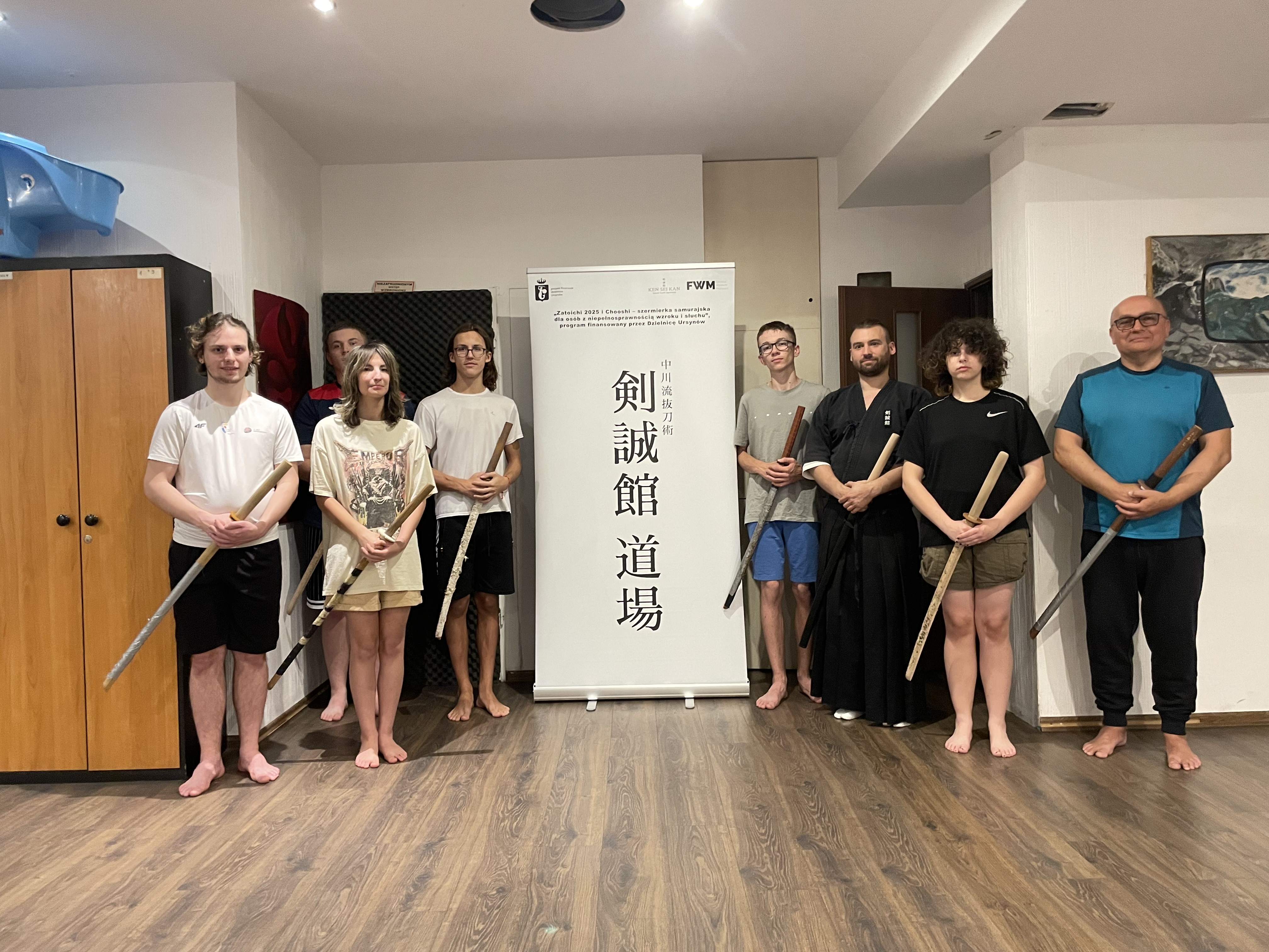 W minionym tygodniu rozpoczęliśmy treningi w Szkole Szabli Japońskiej KEN SEI KAN. Pierwszy trening to poznanie podstawowych zasad udziału w zajęciach - zwłaszcza wzajemne ukłony, które oznaczają szacunek do: miejsca, uczestników i prowadzącego zajęcia. Z dużym zaangażowaniem ćwiczyliśmy postawę, zasady trzymania i posługiwania się mieczem, oraz zadawanie cięć, oczywiście z zachowaniem bezpieczeństwa. Z ciekawością oczekujemy na kolejny trening.