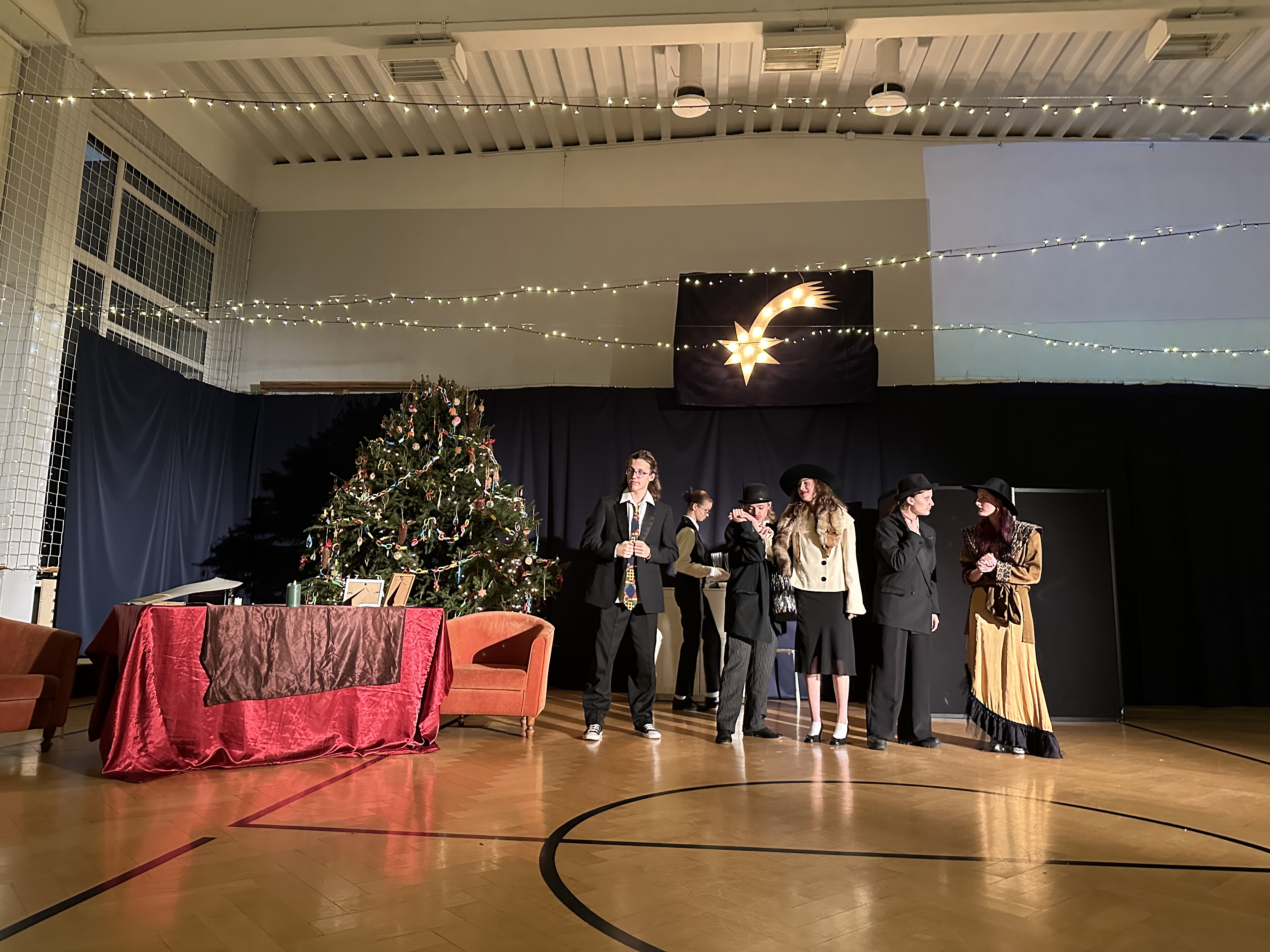 Następnie nasza grupa teatralna z ,,Teatru Surdus” wystawiła ciekawą i pełną humoru sztukę ,,Świąteczny kryminał”. Kreacje aktorskie były niesamowite.