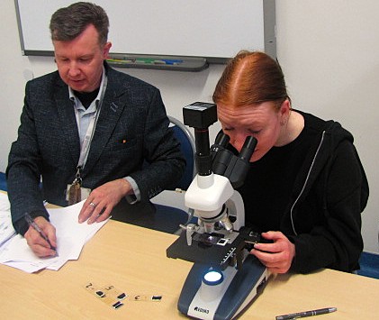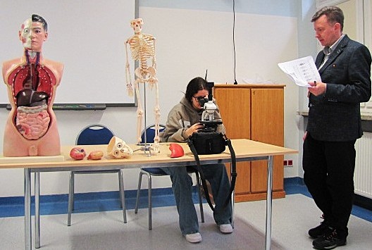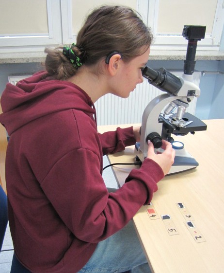 Część praktyczna polegała na rozpoznaniu preparatu mikroskopowego przy wykorzystaniu nowoczesnego mikroskopu optycznego.