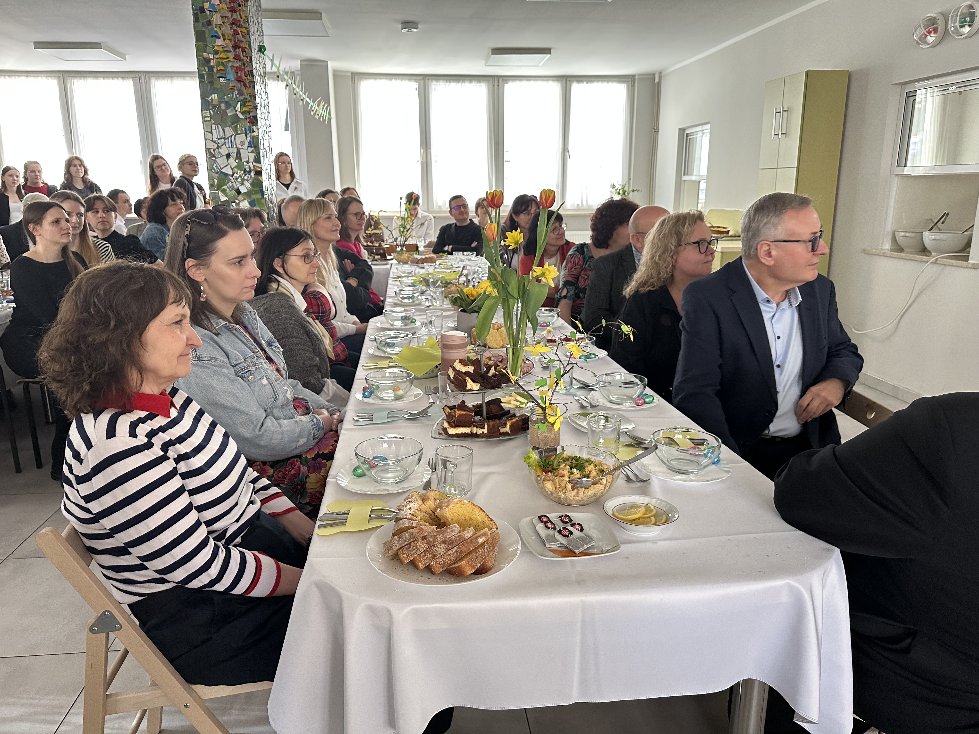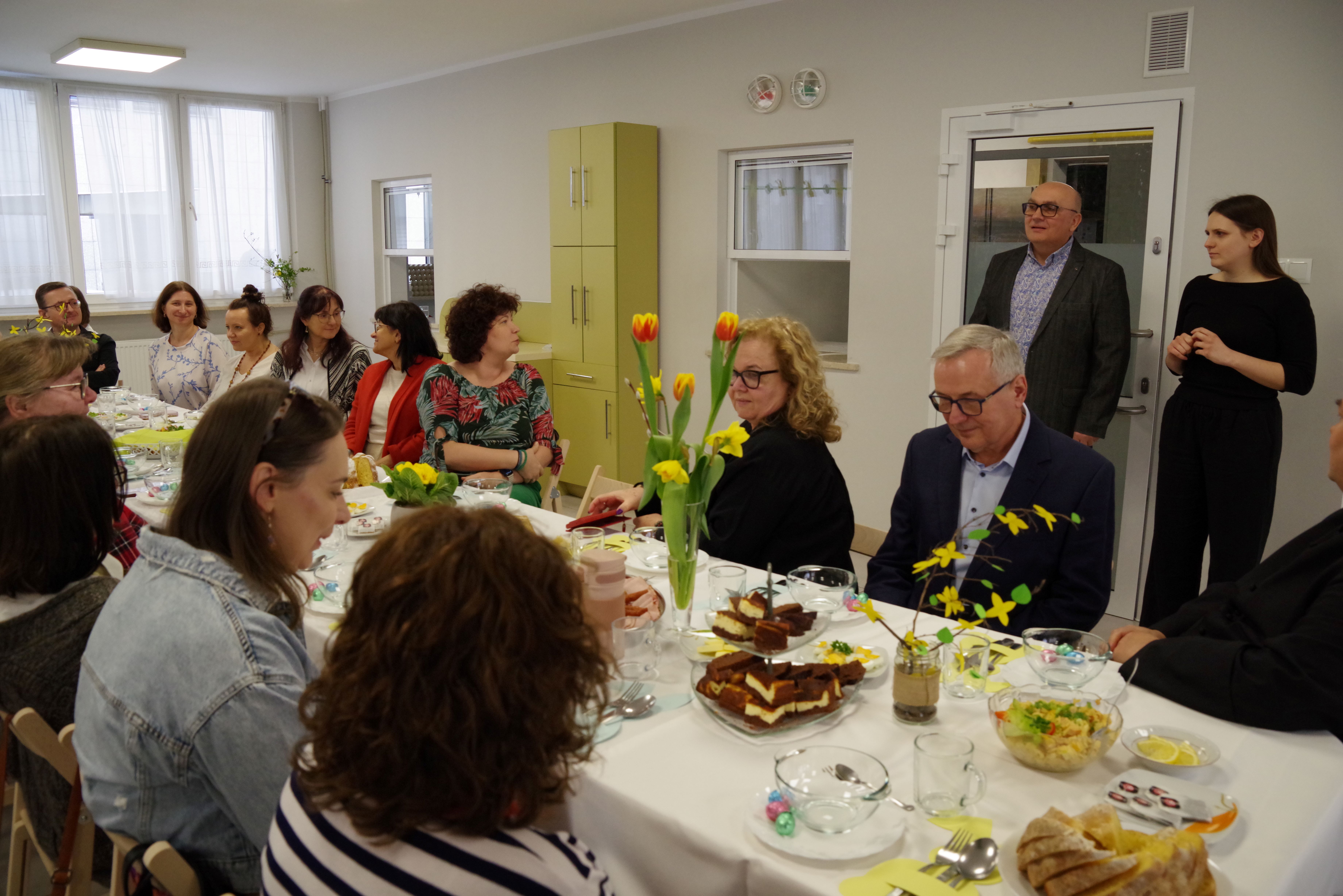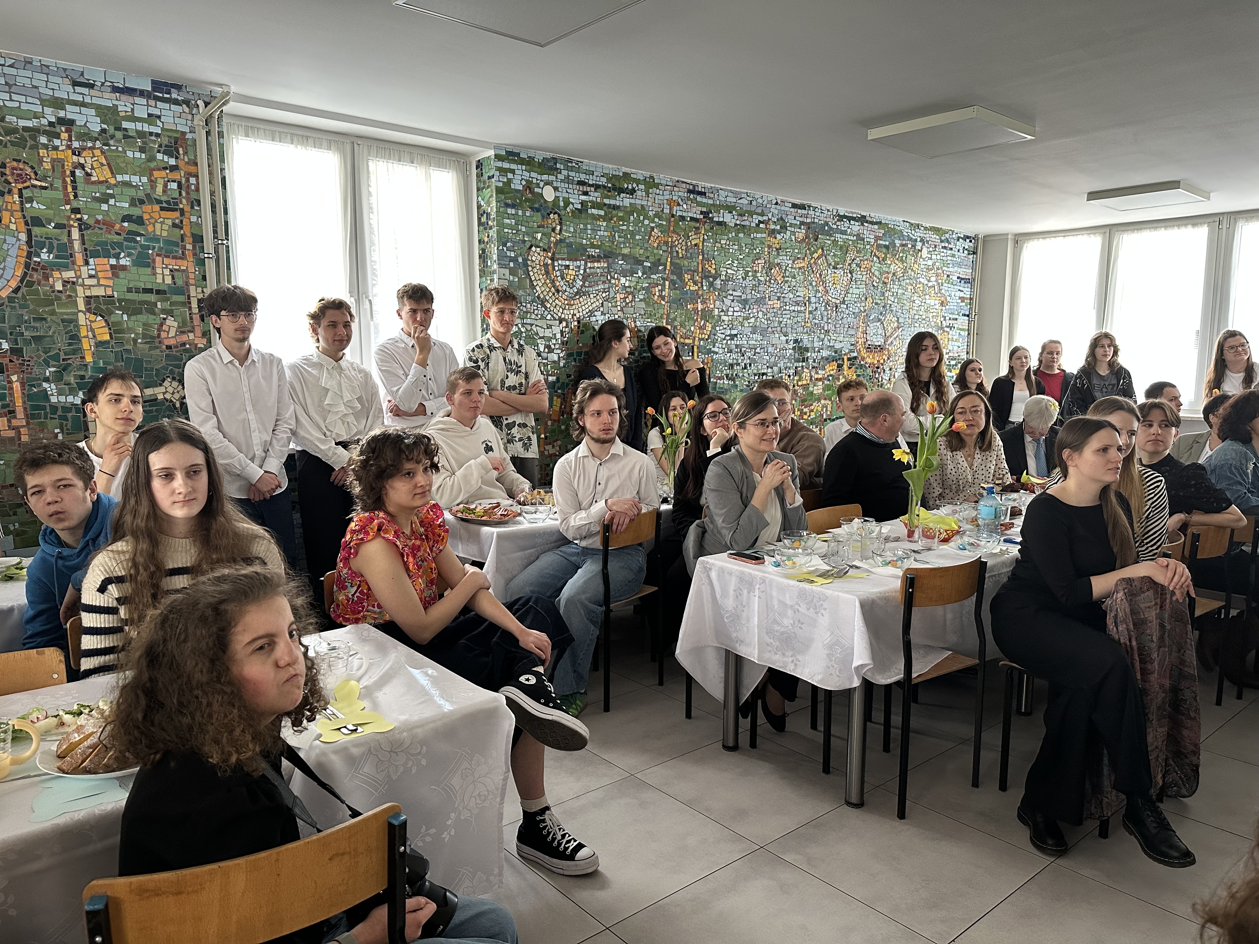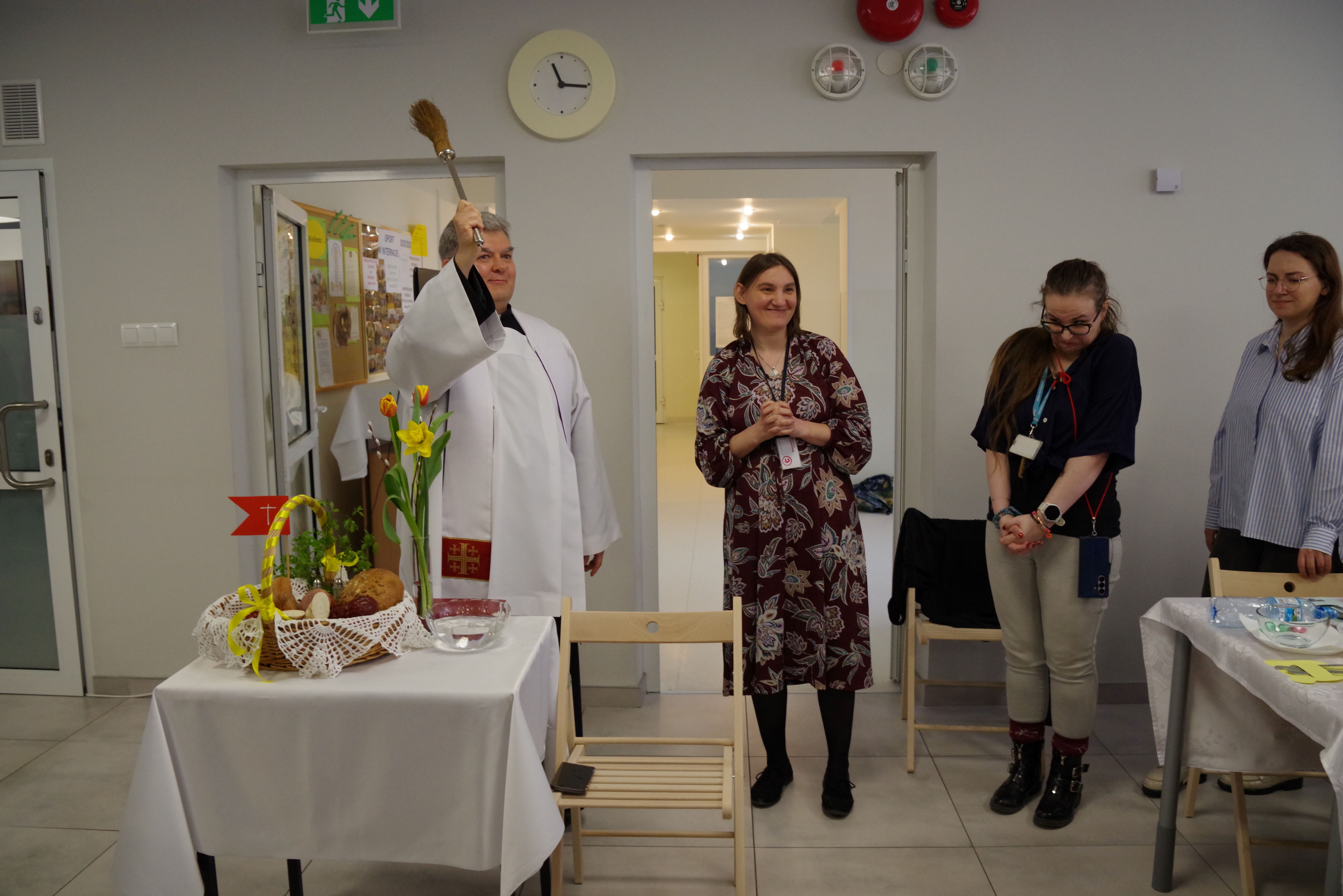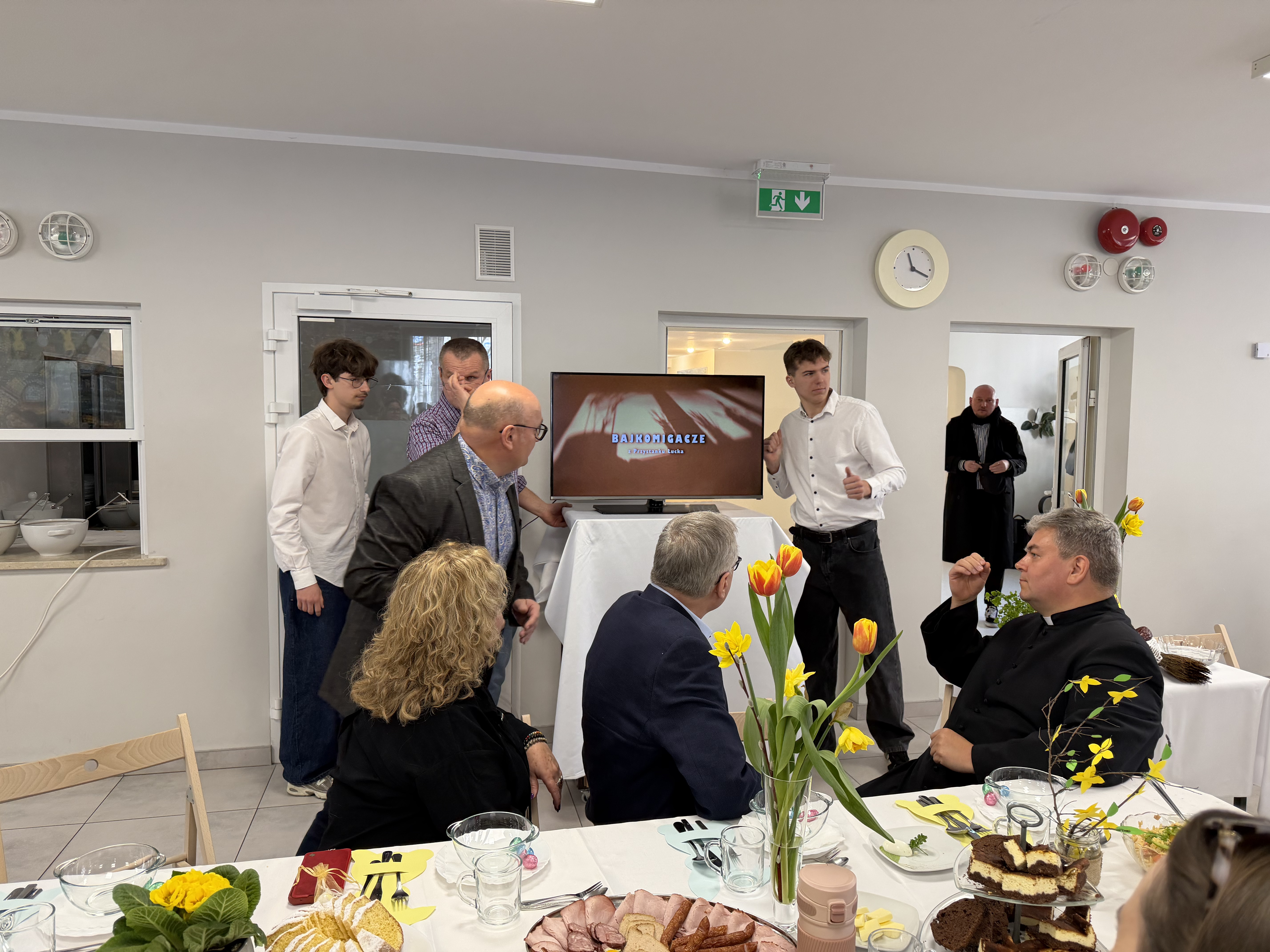 W środę przed Świętami Wielkanocnymi, jak co roku, społeczność Przystanku Łucka zebrała się na uroczystym Śniadaniu Wielkanocnym. Nasza stołówka, wysiłkiem wychowawców i młodzieży, jak zawsze była pięknie udekorowana. Zasiedliśmy przy suto zastawionych tradycyjnymi potrawami wielkanocnymi stołach, a na specjalnym miejscu stał ślicznie udekorowany koszyk wielkanocny przygotowany do poświęcenia pokarmów. Wysłuchaliśmy życzeń świątecznych Kierownika Internatu, Samorządu Uczniowskiego oraz ks. Konrada, który przypomniał o religijnym wymiarze Świąt Wielkiejnocy. Po wspólnej modlitwie poświęcone zostały nie tylko pokarmy w koszu ale także i my oraz nasze stoły. Dzieliliśmy się jak co roku jajkiem. Trzeba przyznać, że nasze panie przygotowujące potrawy sprawiły się wyśmienicie. Żurek i inne specjały wielkanocne smakowały wyśmienicie! Na koniec naszej uroczystości, grupa Bajkomigaczy zaprezentowała nam film specjalnie przygotowany na Wielkanoc. Radości i śmiechu było co niemiara!