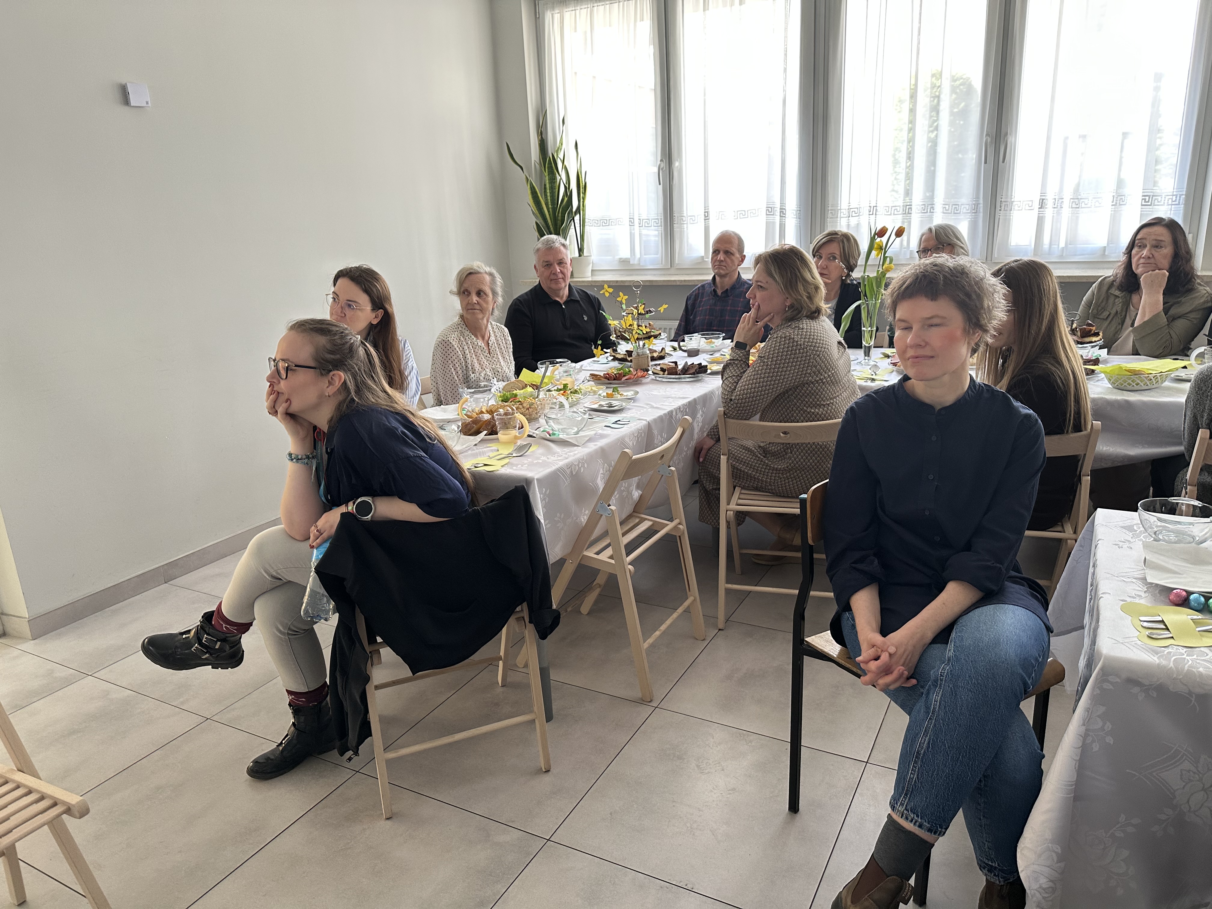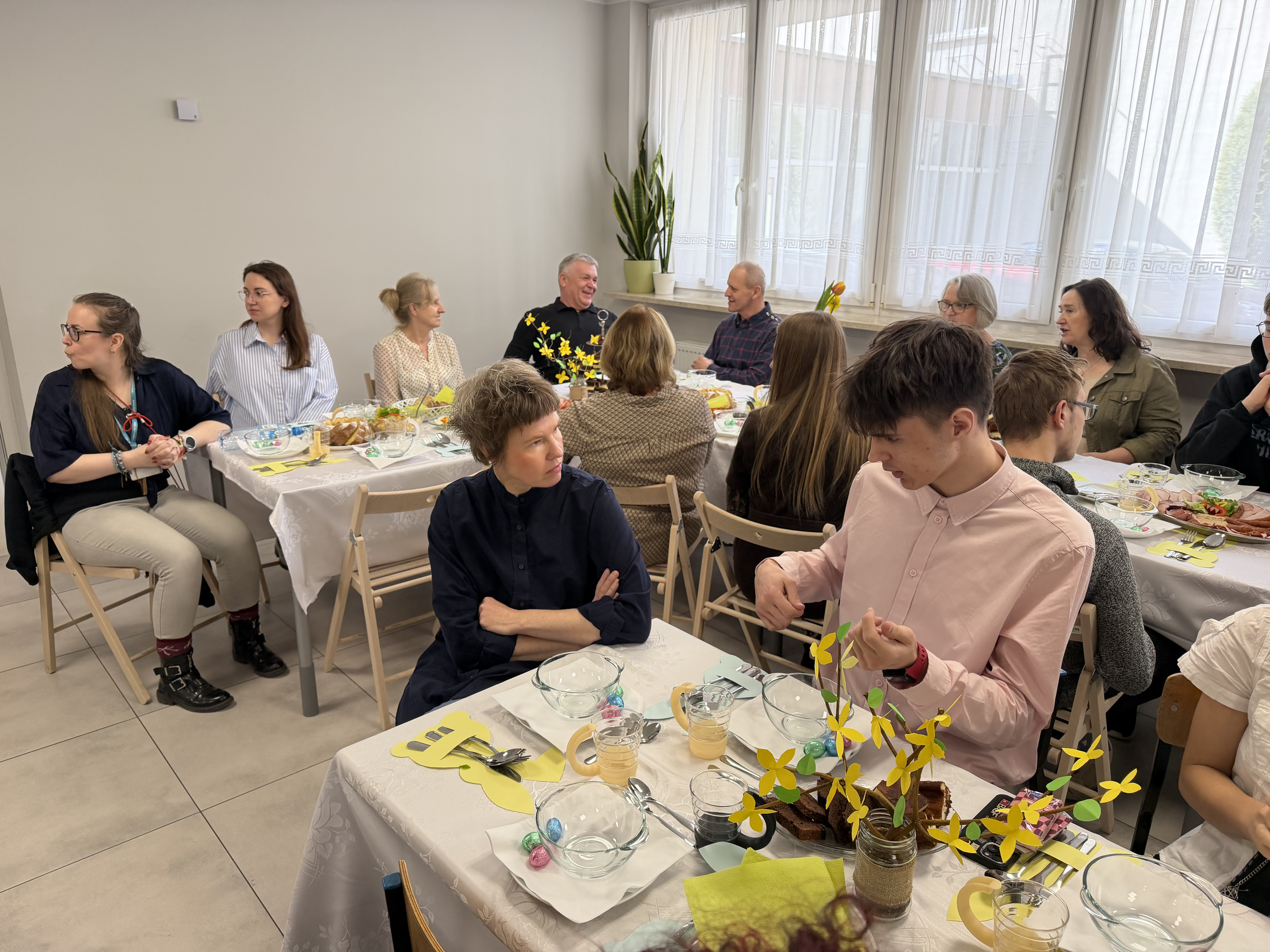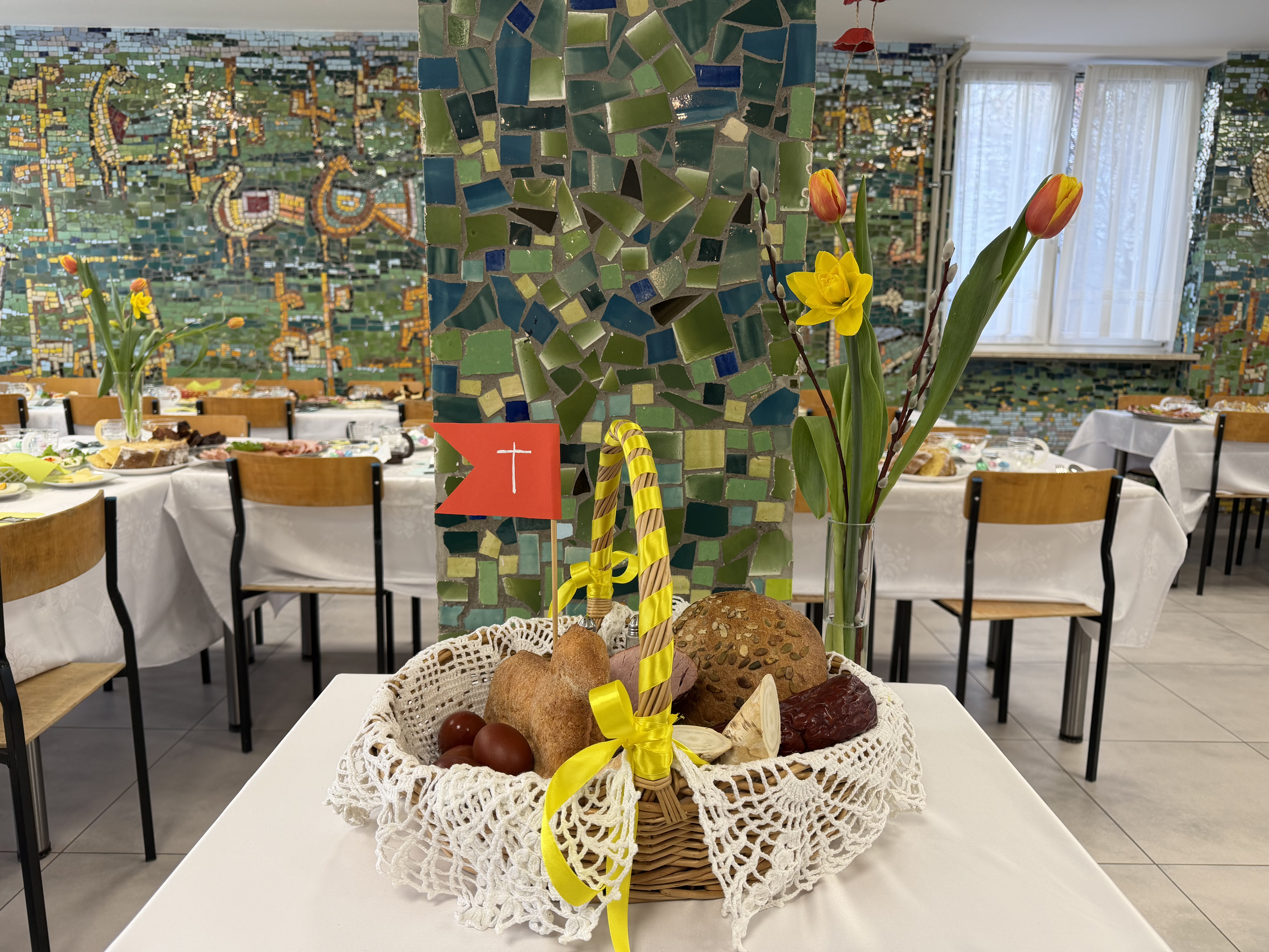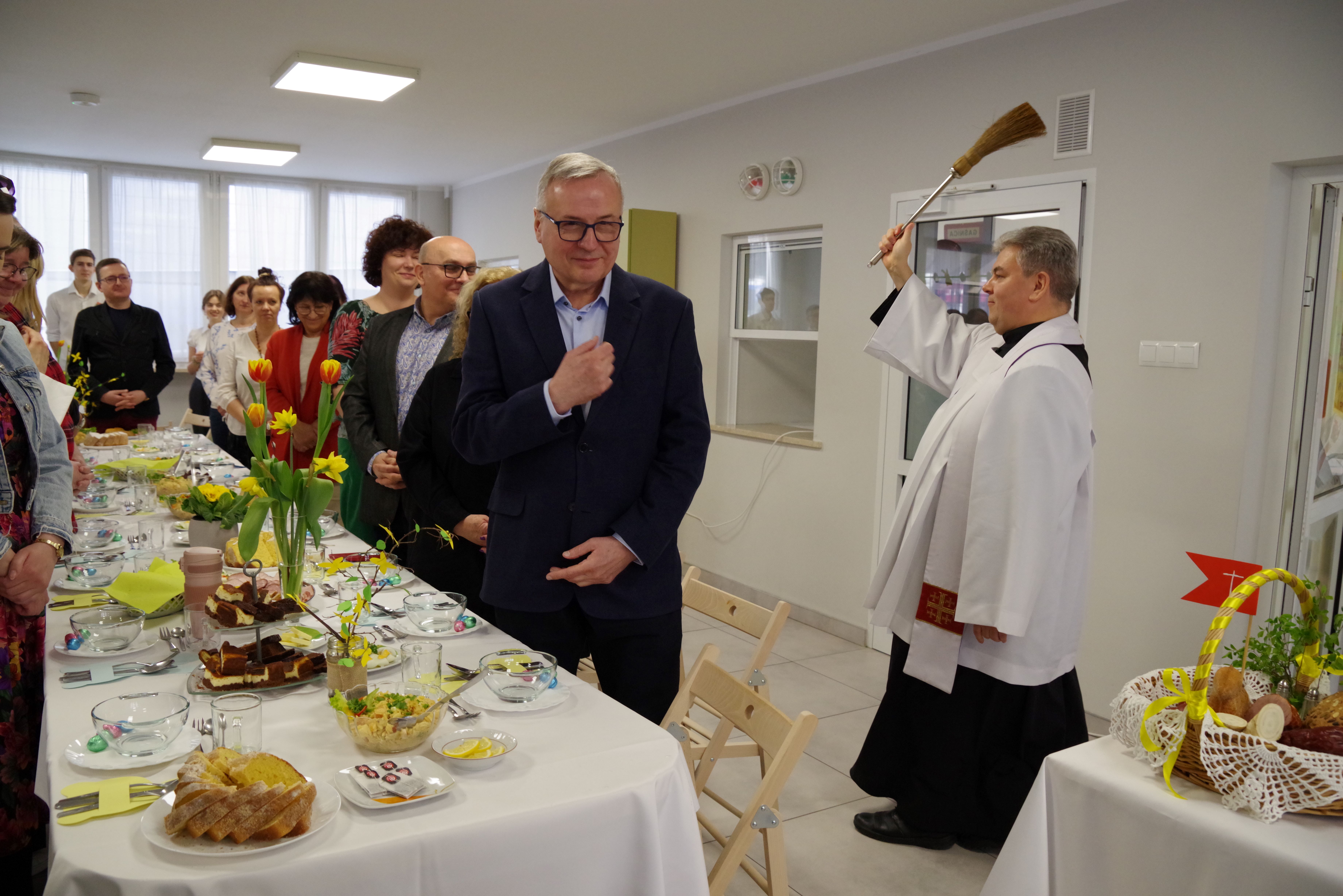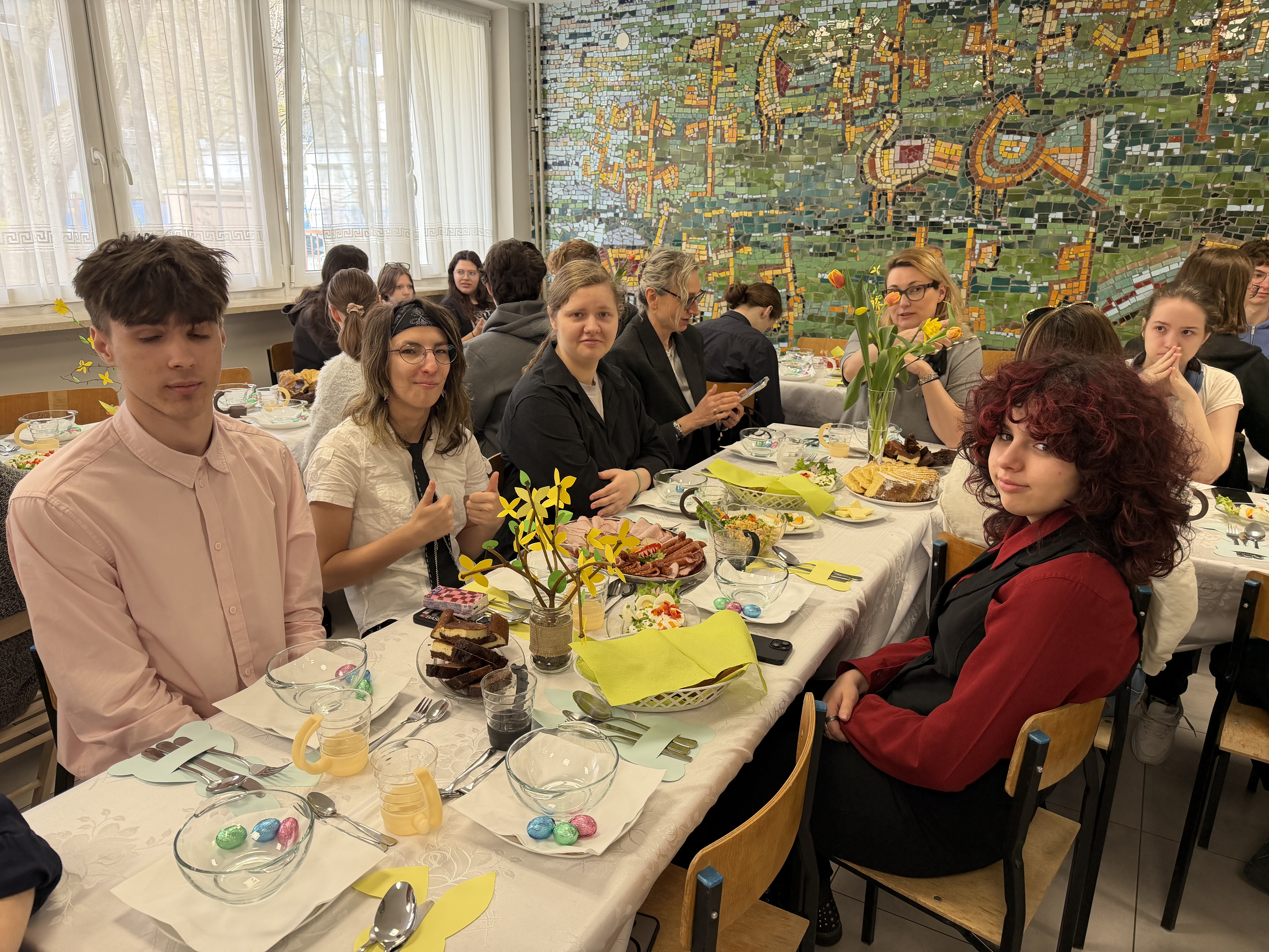 W środę przed Świętami Wielkanocnymi, jak co roku, społeczność Przystanku Łucka zebrała się na uroczystym Śniadaniu Wielkanocnym. Nasza stołówka, wysiłkiem wychowawców i młodzieży, jak zawsze była pięknie udekorowana. Zasiedliśmy przy suto zastawionych tradycyjnymi potrawami wielkanocnymi stołach, a na specjalnym miejscu stał ślicznie udekorowany koszyk wielkanocny przygotowany do poświęcenia pokarmów. Wysłuchaliśmy życzeń świątecznych Kierownika Internatu, Samorządu Uczniowskiego oraz ks. Konrada, który przypomniał o religijnym wymiarze Świąt Wielkiejnocy. Po wspólnej modlitwie poświęcone zostały nie tylko pokarmy w koszu ale także i my oraz nasze stoły. Dzieliliśmy się jak co roku jajkiem. Trzeba przyznać, że nasze panie przygotowujące potrawy sprawiły się wyśmienicie. Żurek i inne specjały wielkanocne smakowały wyśmienicie! Na koniec naszej uroczystości, grupa Bajkomigaczy zaprezentowała nam film specjalnie przygotowany na Wielkanoc. Radości i śmiechu było co niemiara!
